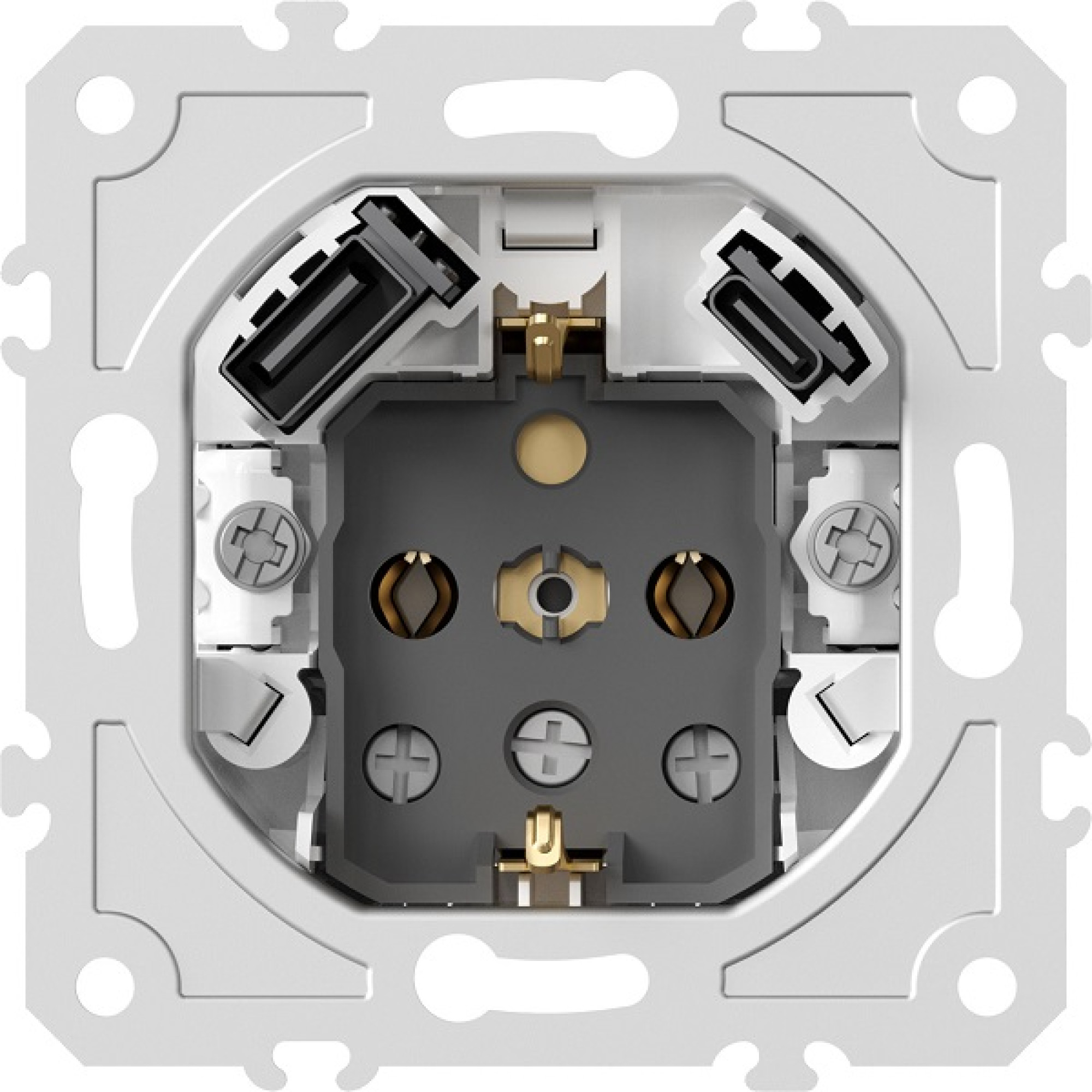 Donel механизм розетки Schuko 16А 250 В~ с зарядным устройством USB A+C, 5V/3A, мощность 20W, на винтах, серия DB